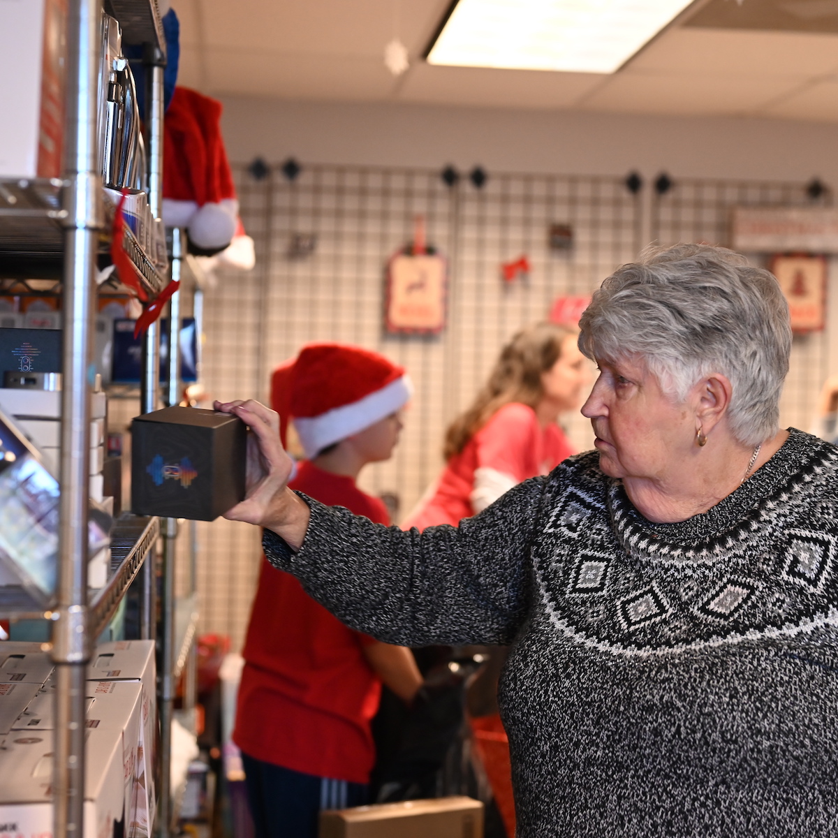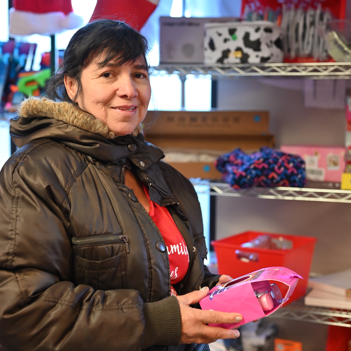 This year, also we did something for our client families that we’ve never done before: we welcomed them into our Christmas Shop. There, they were able to pick out the gifts THEIR children wanted, contribute a little toward the cost and even get free wrapping supplies.